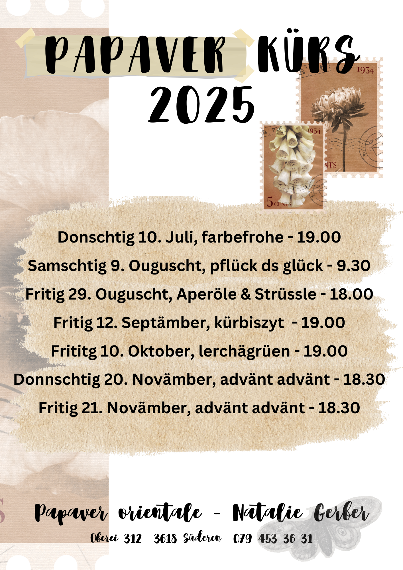 Immer inisch bis zwümau im Monet gits ä liebevou vorbereitetä Kursabe im charmantä Tribhuus mit ämne himmlische Gebäck & ämne gmüethleche zäme sih. Äs warms Jäggli isch drum sicher ä gueti Wauh wes richtig Herbscht zuegit.