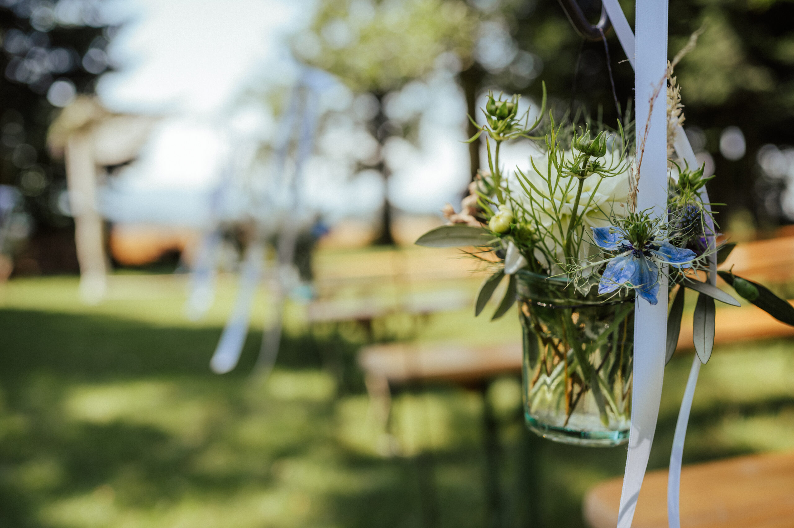 Ä Vase mit früsche Blueme, äs Windliecht kreativ arrangiert, dekoratione mit Trochäblueme zu üsne Jahreszyte – mit ärä floristische ungerstützig überchunnt ds Oug ä harmonische u wouhfüehlende Ihdruck.